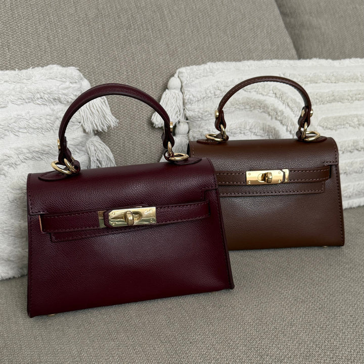 Découvrez le sac à main en cuir VALENTINA. Son fermoir à boucle doré ajoute une touche de sophistication, tandis que sa polyvalence en tant que sac à main ou bandoulière en fait un accessoire élégant et raffiné.