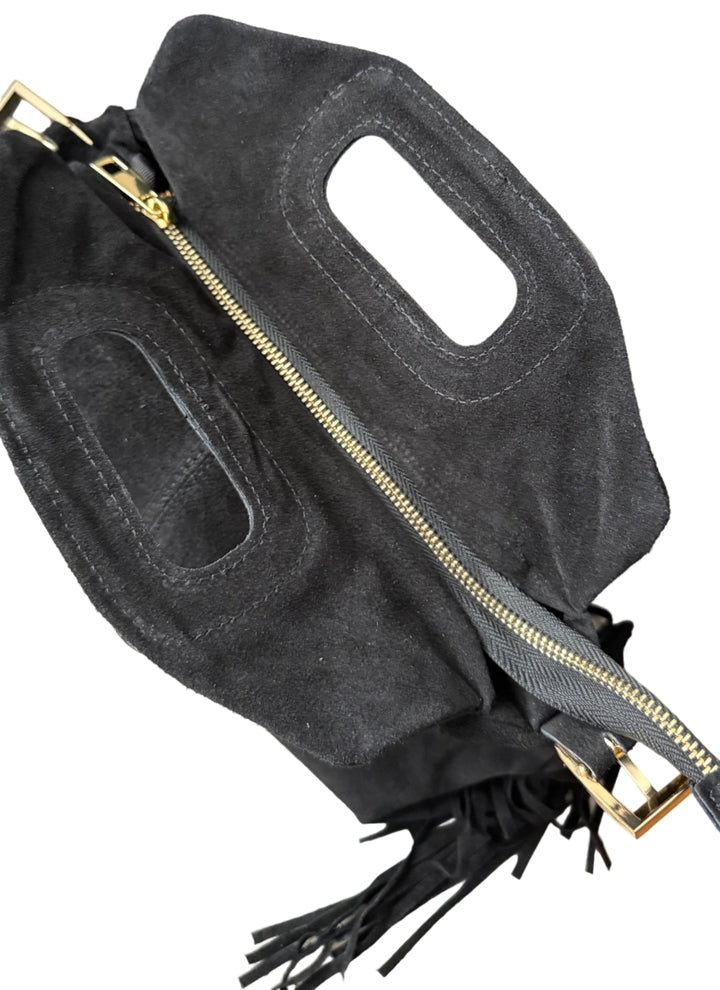 Découvrez le sac MIA, votre compagnon idéal pour chaque jour. Confectionné en cuir suède doux et raffiné, ce sac à bandoulière arbore des franges élégantes qui ajoutent une touche bohème à votre style. Portez-le en bandoulière, sur l'épaule ou à la main. Polyvalent et intemporel, le MIA s'adapte à tous vos besoins, du travail aux sorties entre amis. Un accessoire de qualité qui vous accompagnera longtemps avec élégance.