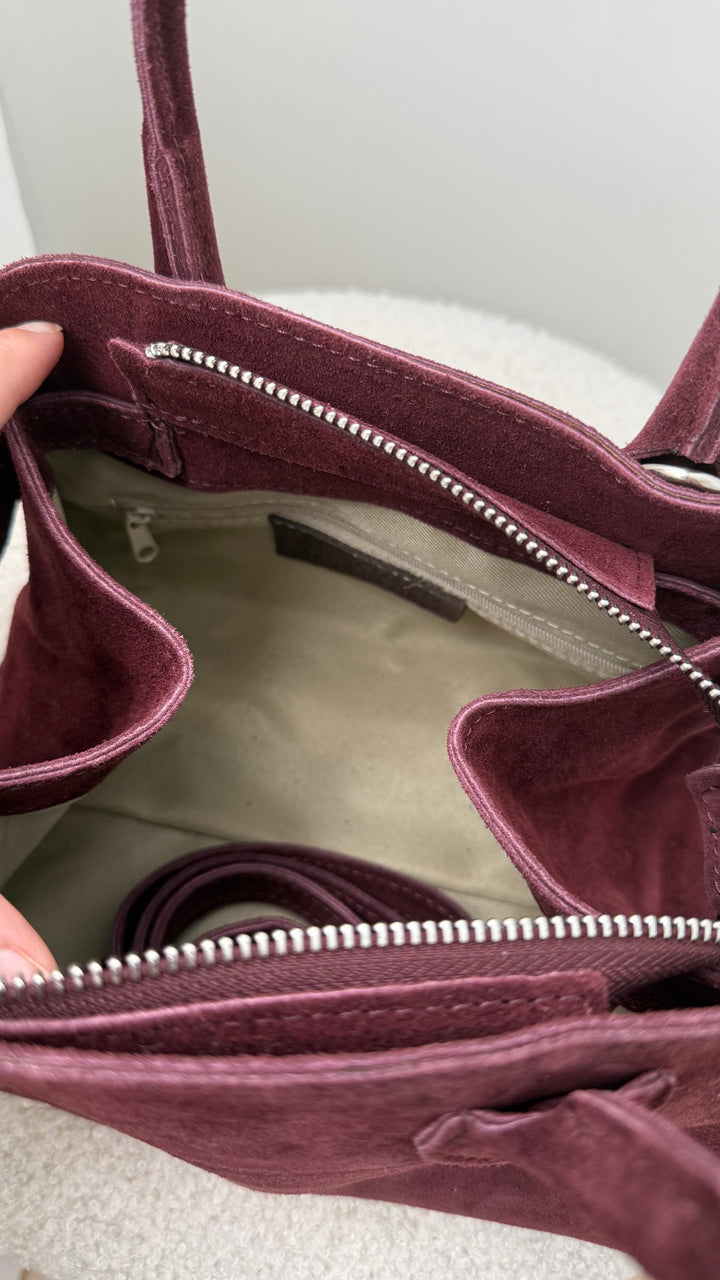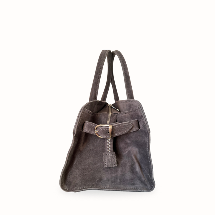 Le sac à main GIULIA en cuir suède offre un style sophistiqué et moderne grâce à ses boucles latérales argentés et sa texture douce en suède. Il sera l'allié de votre quotidien grâce à sa taille et son format pratique et spacieux.